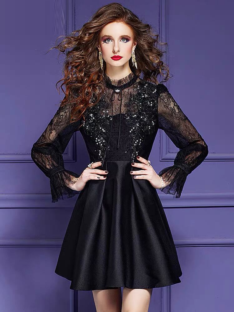 Pinkoz 女性パッチワーク花刺繍ビーズ スパンコール長袖 A ライン ドレス エレガントなベージュ パーティー ナイト vestidos シック ロング ピンク 花柄 Aライン