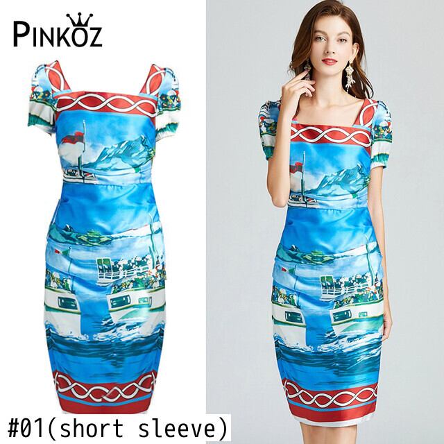 Pinkoz 滑走路デザイナー ブルー花柄プリント半袖自由奔放に生きる夏パーティー ミディ ドレスぬるぬるしたドレス vestidos デ フィエスタ za ショート ピンク ハーフスリーブ サマー 夏物