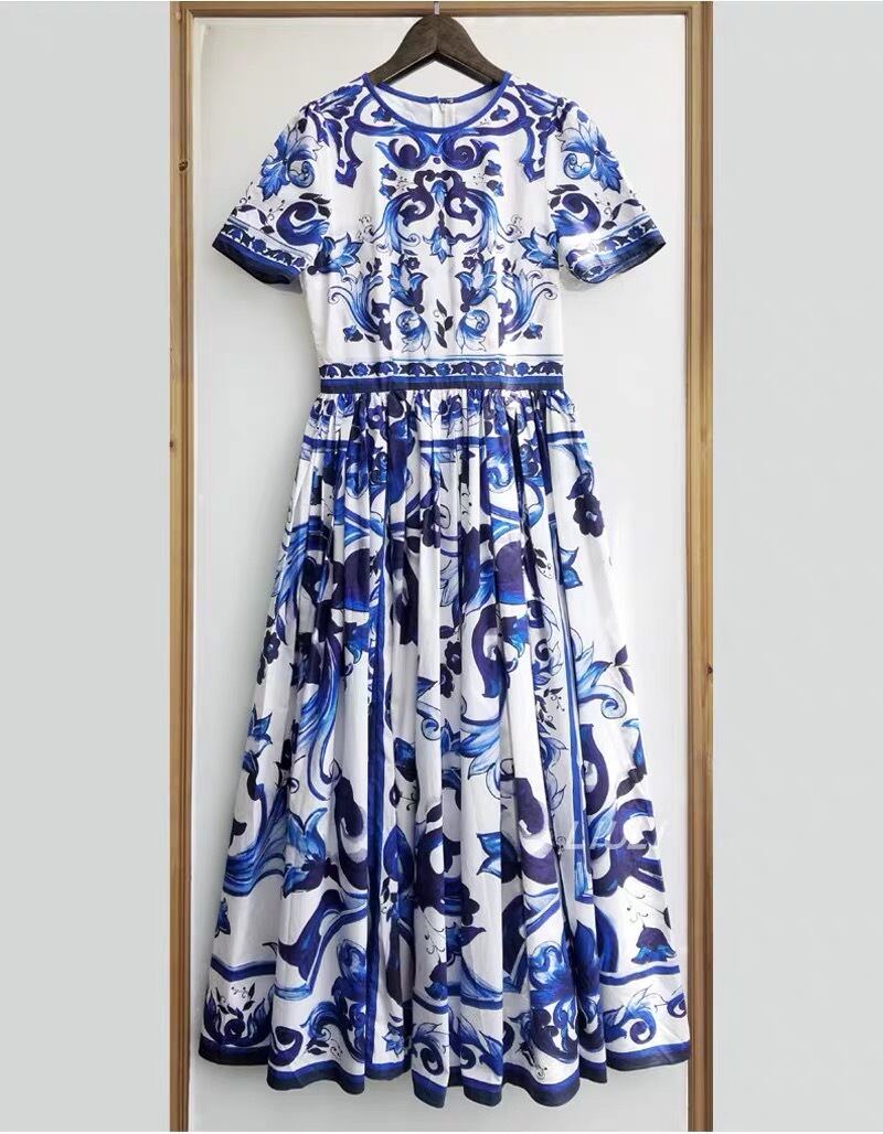 Pinkoz 有名人スタイリッシュな青と白の o ネック ミディ ドレス女性半袖夏休みエレガントな vestidos ヴィンテージ traf ショート ピンク ホワイト ブルー ハーフスリーブ サマー 夏物 Oネック ビンテージ