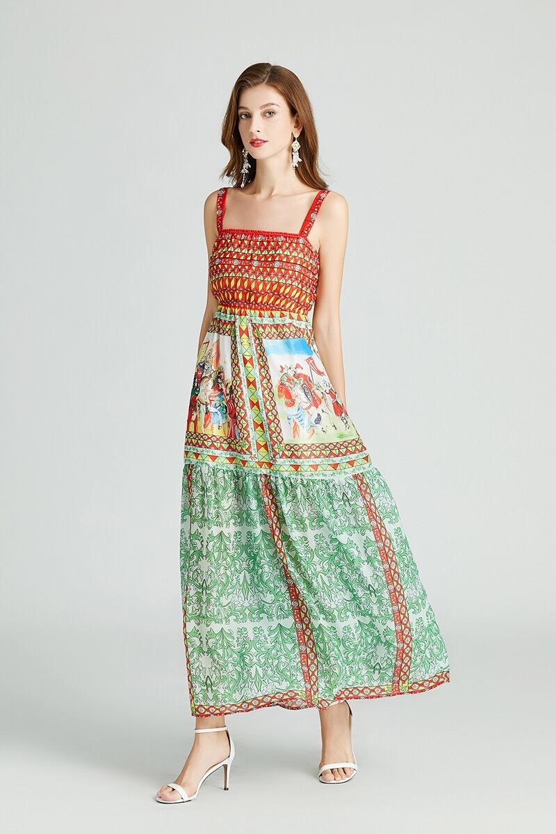 Pinkoz ヴィンテージ花柄プリント女性マキシドレススパゲッティストラップ夏自由奔放に生きるホリデーパーティードレスハイウエストプラス sie 2XL ファッション ハイウェスト ピンク サマー 夏物 ビンテージ