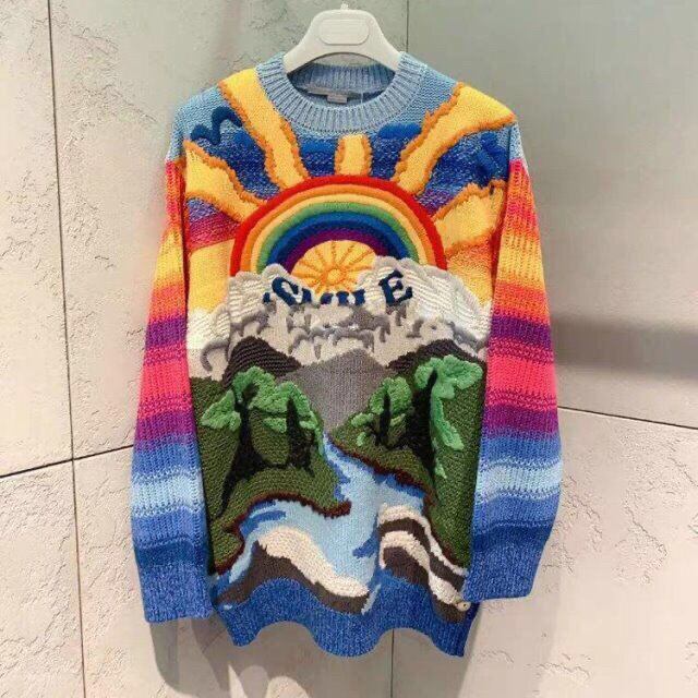 Pinkoz 滑走路女性刺繍手紙有名人シックなトップス女性ブルーロングセーター冬 Knittinf プルオーバークリスマス za ピンク ウィンター 冬物