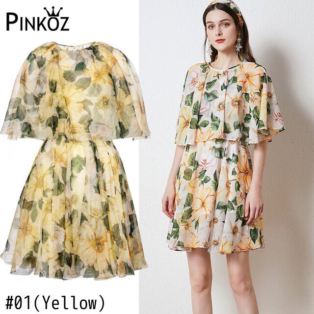 Pinkoz 夏ミニドレスシフォンホリデーカジュアルルースドレス女性レディシックな花柄プリントパリファッション vestido デ mujer ピンク サマー 夏物