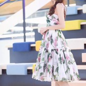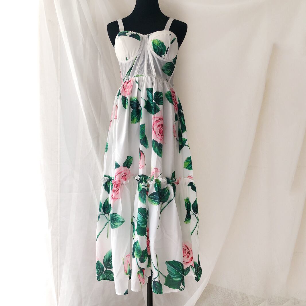 Pinkoz 新着高級パーティー ミディ ドレス グリーン ピンク ローズ フラワー パーティー ディナー ドレス キャミソール セクシー シャーリング ロパ za フラワーデザイン