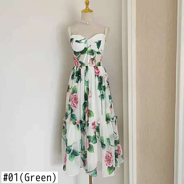 Pinkoz デザイナー高級ミディドレス女性パーティーフラワープリントメッシュ A ラインローブ自由奔放に生きるデ mujer シックなパリのドレス vestidos y2k ピンク Aライン フラワーデザイン