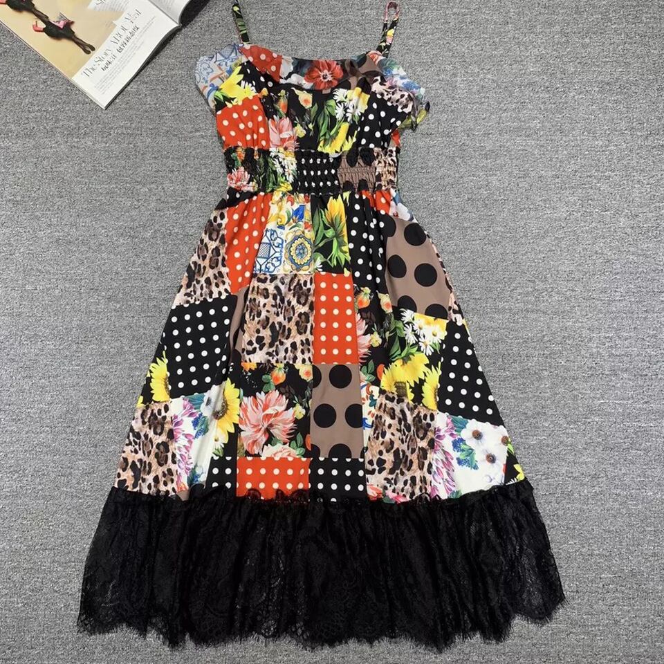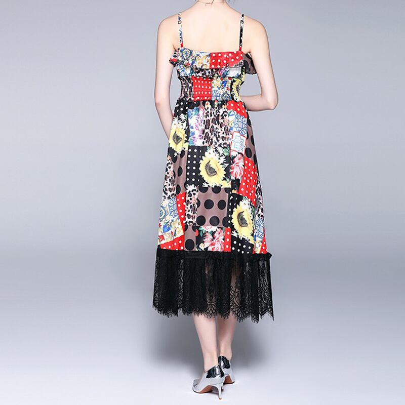 Pinkoz 滑走路夏休みドレス女性スパゲッティストラップ花柄レーススプライスパーティーミディドレスフリル za ピンク ラッフル サマー 夏物