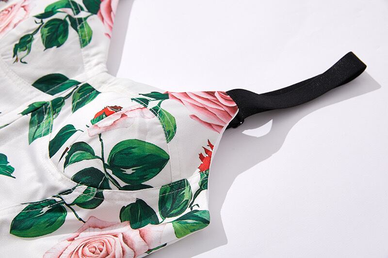 Pinkoz デザイナー女性ファッションミディドレス v ネックスパゲッティストラップピンクのバラの花プリントシャーリング夏休みローブビッグサイズ サマー 夏物 Vネック フラワーデザイン