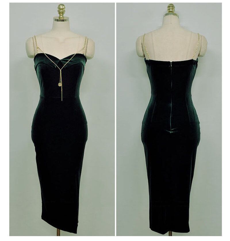 Pinkoz セクシーな夜デザイナー スタイル ミディ ベルベット ドレス女性ファム スリム ボディコン シース チェン スパゲッティ ストラップ パーティー ドレス ローブ ピンク フェミニン