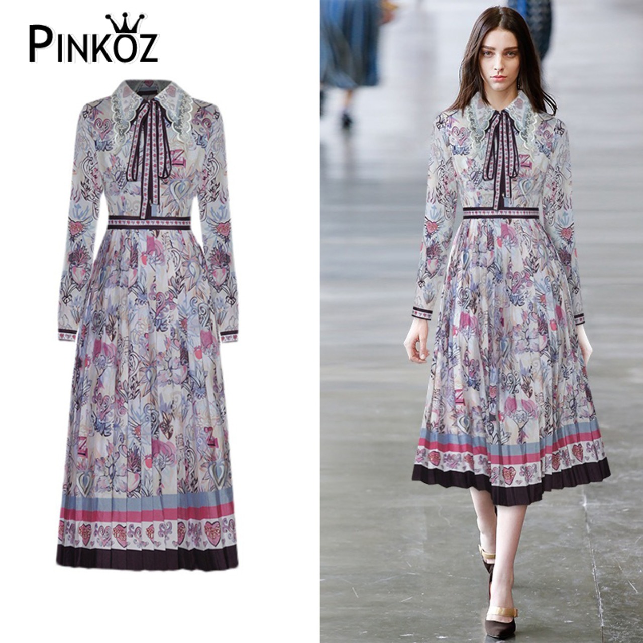 Pinkoz 女性エレガントなピーターパン襟レースアップ紫花柄プリントデザイナーファッションハイウエストストリートシックローブ服 ハイウェスト ピンク パープル