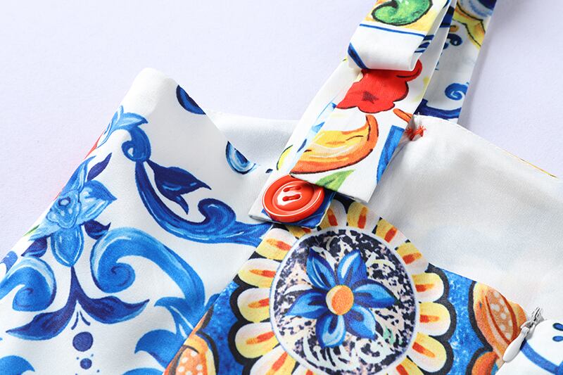 Pinkoz ランウェイ サマードレス 2019 スパゲッティストラップ バックレス 青と白の磁器 花柄 ロングドレス ピンク ホワイト ブルー 夏物