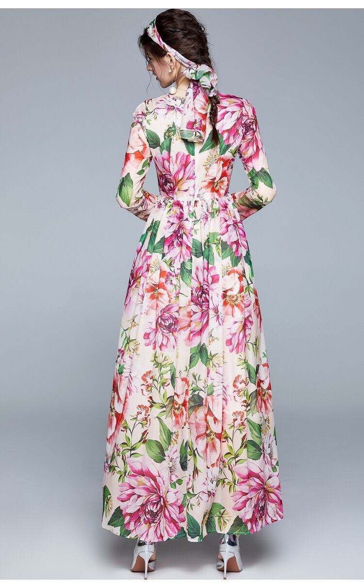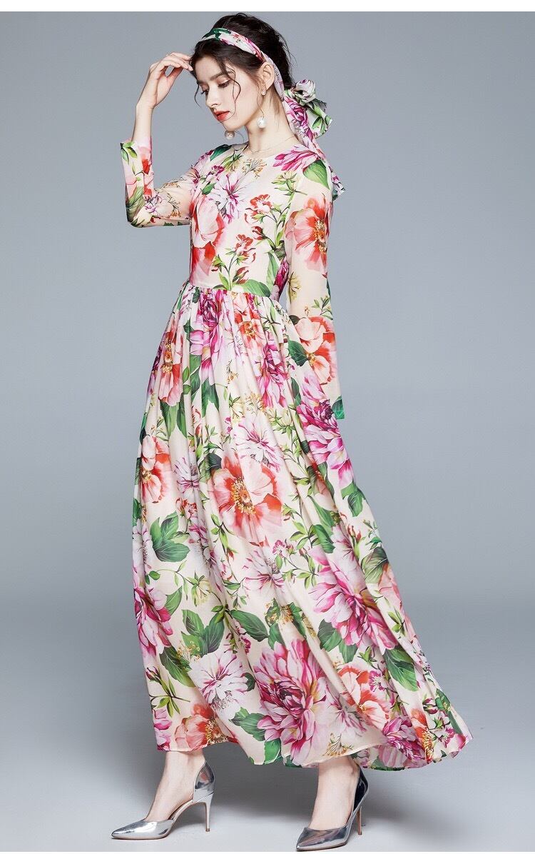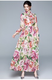 Pinkoz ドレス春夏の女性のドレス弓襟ローズ花柄休暇パーティーシフォンドレスシック ピンク リボン スプリング 春物 サマー 夏物