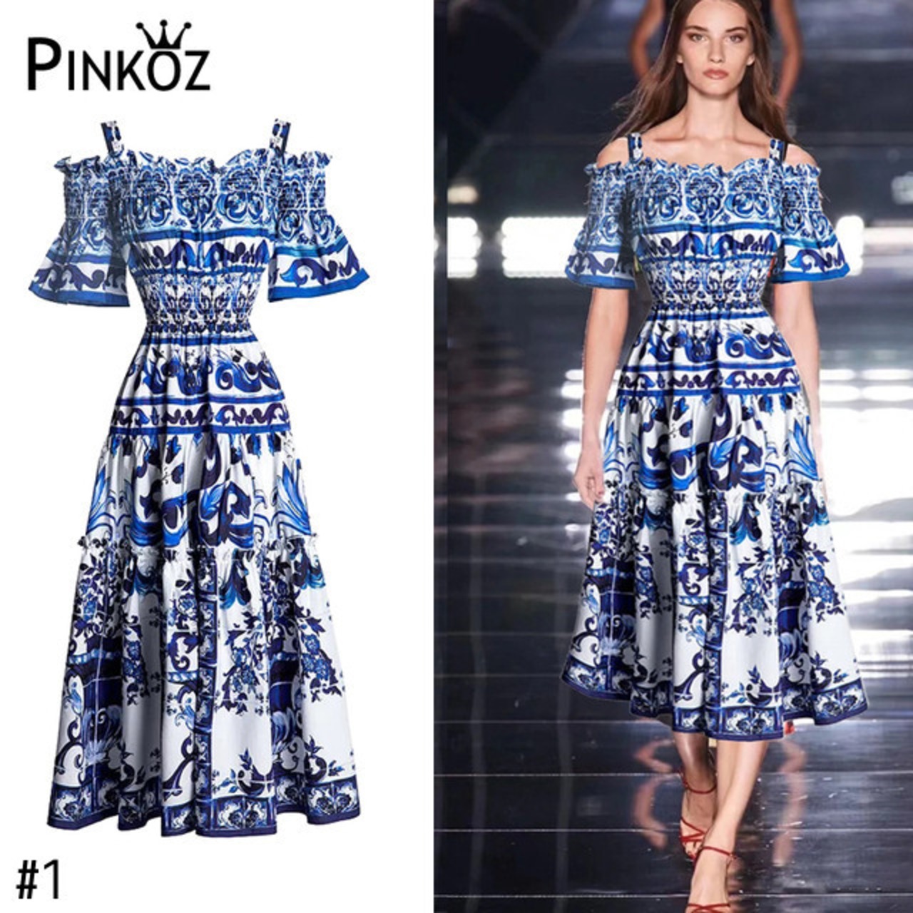 Pinkoz 女性デザイナー青と白蝶スリーブ スラッシュ ネック弾性待機ミディ丈ドレス カジュアル パーティー ナイト vestido ピンク ホワイト ブルー エラスティック 伸縮