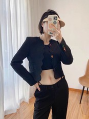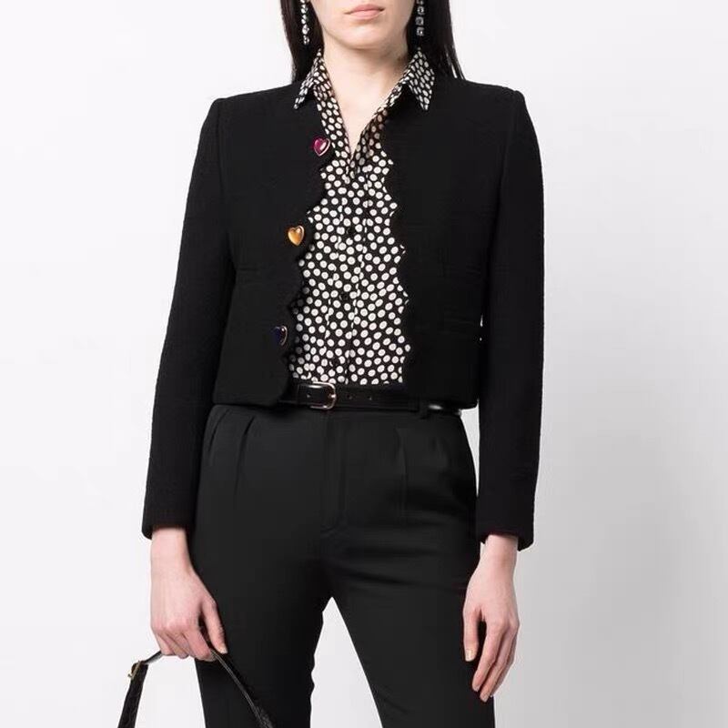 Pinkoz 滑走路デザイナー高級女性ショート コート カラフルなハート愛ボタン パーティー ブラック フルスリーブ ツイード ジャケット シックなトップス トラフ ピンク