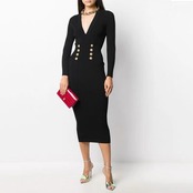 Pinkoz 滑走路デザイナー ブルー v ネック ダブル ブレスト編み弾性ミディ ドレス秋冬セーター ドレス vestidos ヴィンテージ za ピンク エラスティック 伸縮 オータム 秋物 ウィンター 冬物 Vネック ビンテージ