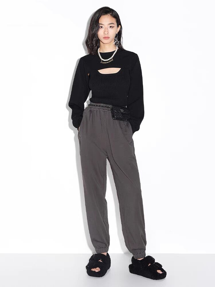 Pinkoz セレブ女性ニットプルオーバー黒中空アウトぬるぬるセーターフルスリーブカジュアルハイストリートファッション衣類ファム y2k ピンク ブラック フェミニン