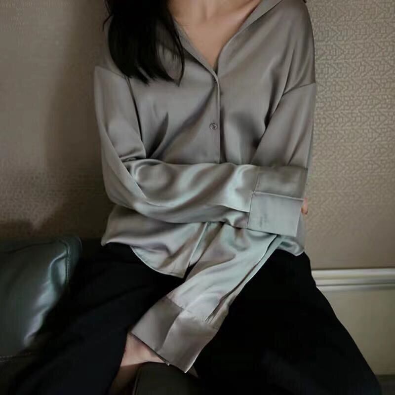 Pinkoz 春夏トップブラウスオフィスレディレタープリントシャツサテンブラウス女性シャツブラウス Pluse サイズ ピンク スプリング 春物 サマー 夏物 会社 学校 通勤や通学にも
