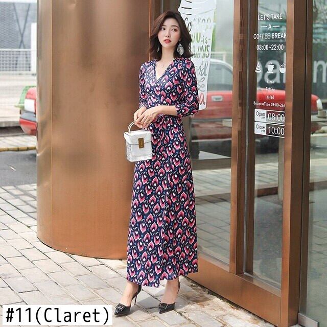 Pinkoz 赤花柄プリント ターン ダウン襟レース アップ マキシ ドレス サッシ春夏プラス サイズ 2xl ルーズ カジュアル ファッション衣類 ピンク レッド 大きめサイズ スプリング 春物 サマー 夏物 レースアップ