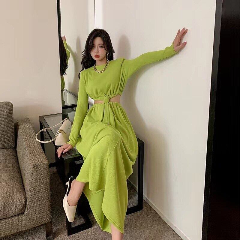 Pinkoz デザイナーのセクシーな弾性マキシドレス中空アウトパーティーグリーンぬるぬるボディコンロングドレスファッションハイストリート服 vestidos ピンク エラスティック 伸縮