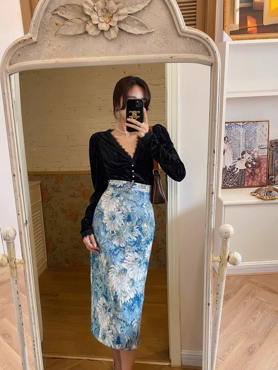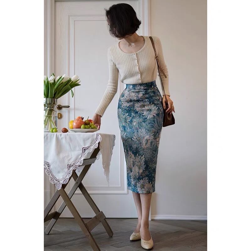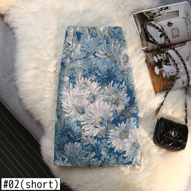 Pinkoz ヴィンテージ女 ロング ピンク レトロ エレガント スカート フラワーデザイン ビンテージ