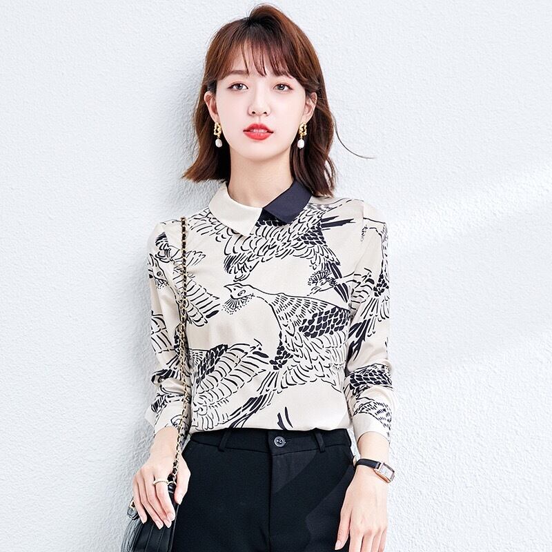 Pinkoz 滑走路デザイナーアニマルプリントヴィンテージターンダウン襟女性ブラウスプルオーバーフルスリーブシャツオフィスレディトップスファッション ピンク ビンテージ 会社 学校 通勤や通学にも