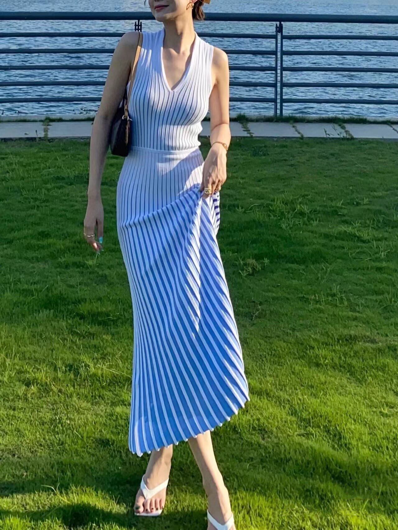 Pinkoz ライトブルーニットロングドレス v ネックタンクノースリーブぬるぬるボディコンドレスセクシーなパーティーナイト女性 vestidos ファッションローブ ピンク Vネック