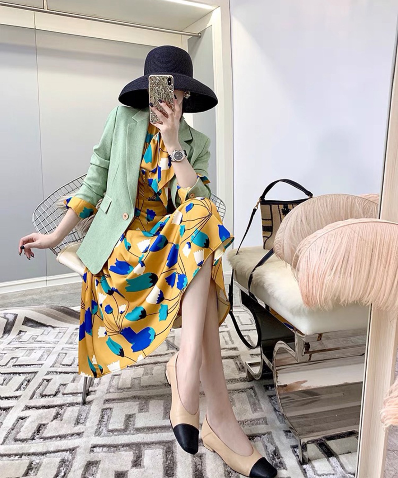 Pinkoz ランウェイ デザイナー セレブ スタイリッシュ 花柄 シングル ブレスト 春 シック ボヘミアン ドレス ベルト付き パーティー エレガント ドレス z ピンク スプリング 春物 ハーネス