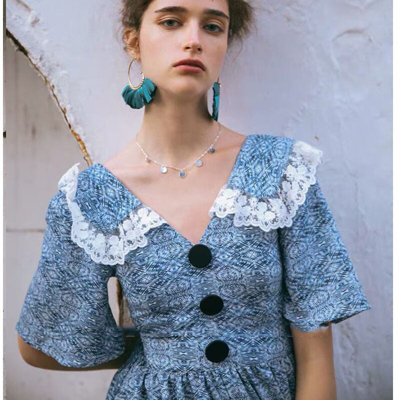 Pinkoz マキシ ドレス女性のスタイル夏フレンチ ピーターパン襟プリント ホリデー パーティー ビーチ ボヘミアン エレガントな v ネック ドレス ピンク サマー 夏物 Vネック