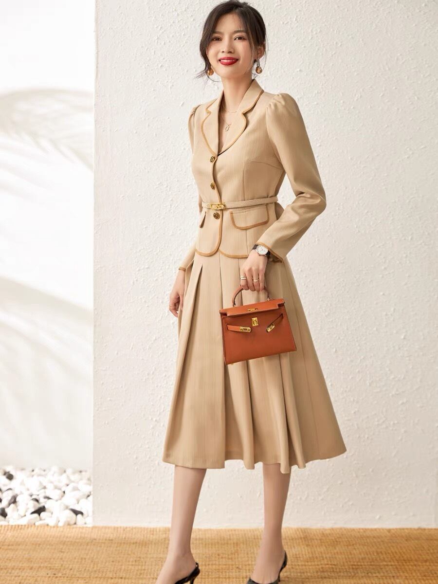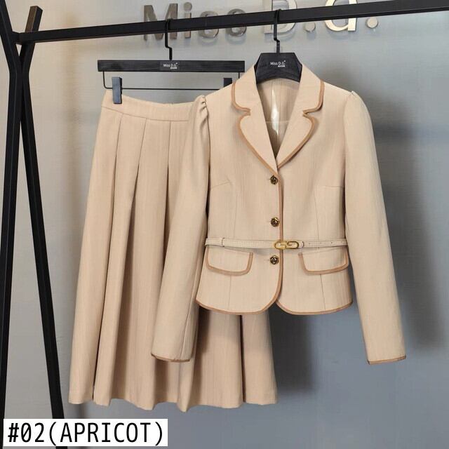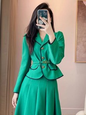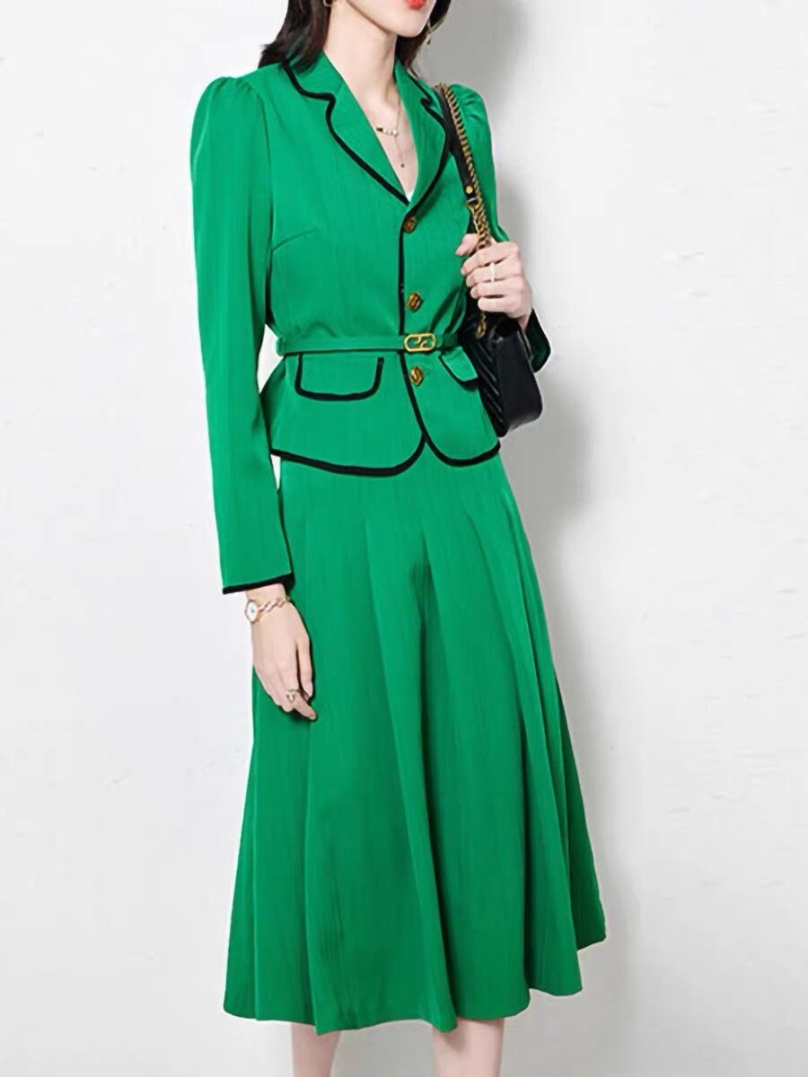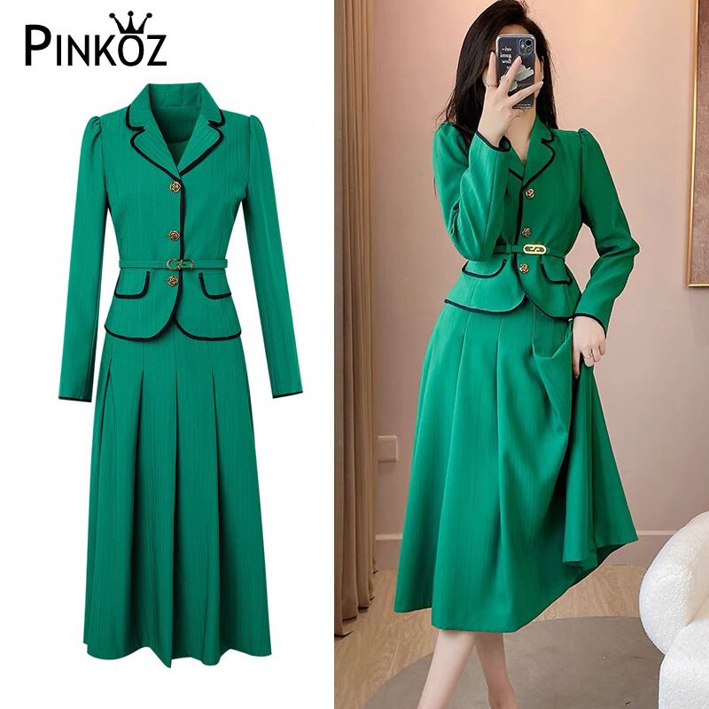 Pinkoz 女性 2 点セット冬のエレガントな作業服グリーン ブレザー ジャケット ボタン トップス ミディ スカート衣装 traf ピンク ウィンター 冬物