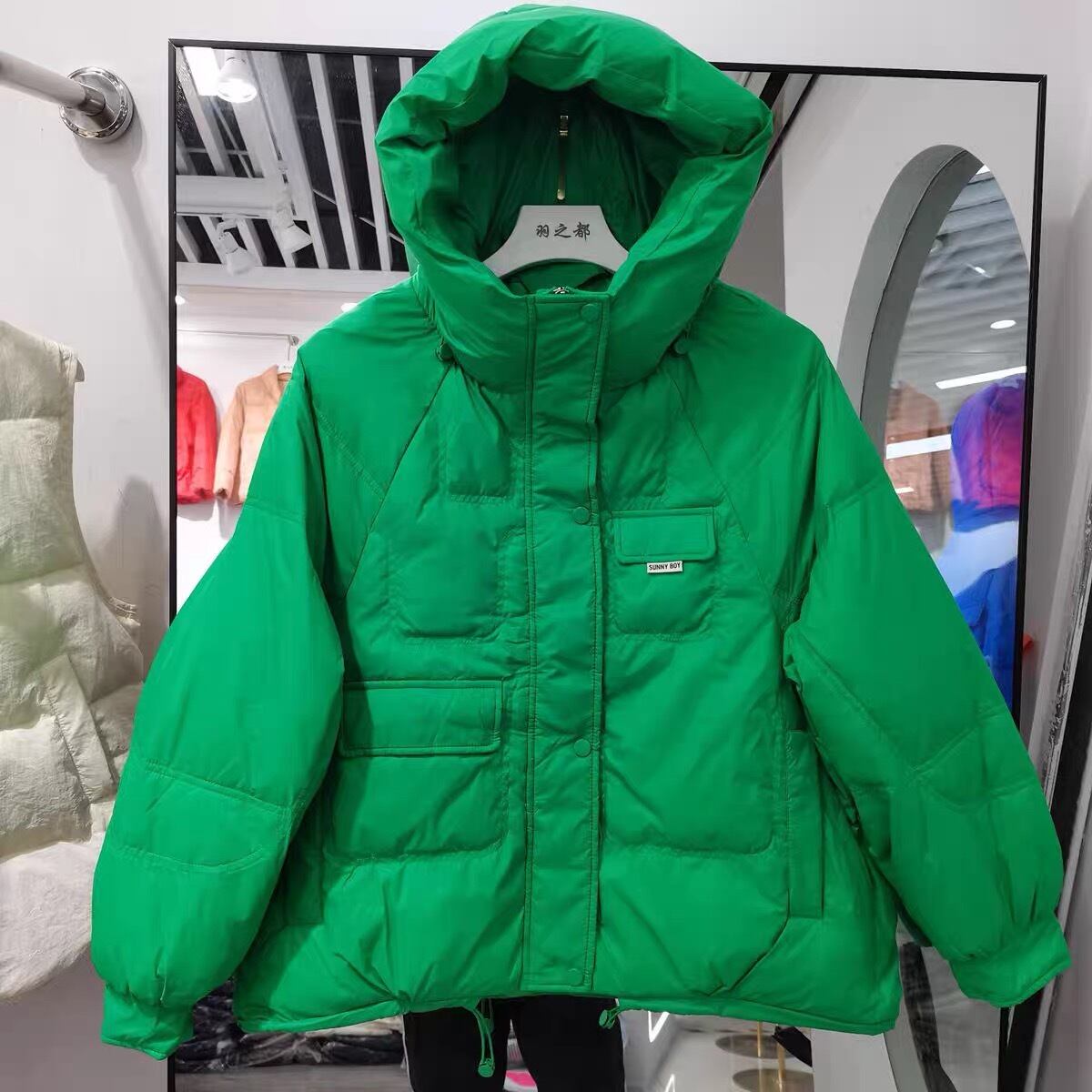 Pinkoz 女性ショート冬のジャケットの女性パーカーコート冬フード付きグリーン秋冬コート暖かいフグジャケット女性 ピンク オータム 秋物 ウィンター 冬物