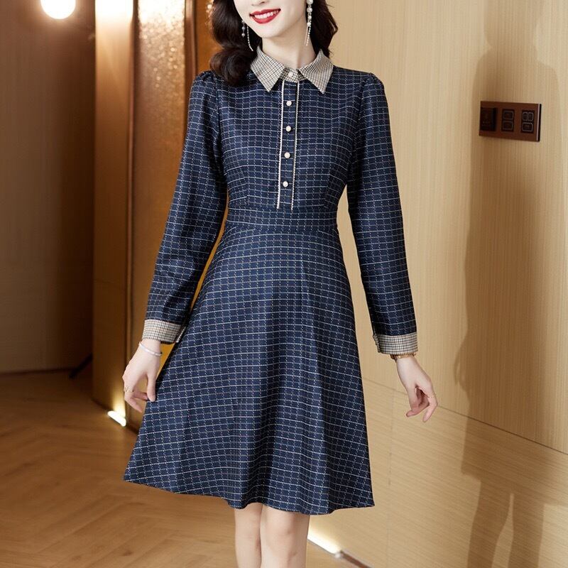 Pinkoz 秋冬ターンダウン襟女性のシングルブレストチェック柄 p スリムでエレガントなオフィス膝丈のベスト ピンク オータム 秋物 ウィンター 冬物 会社 学校 通勤や通学にも