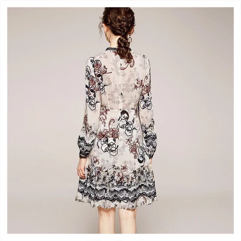 Pinkoz ヴィンテージ女性膝丈ドレス カジュアル プリント フルスリーブ春秋 A ライン エレガント イングランド スタイリッシュなファッション ドレス z ピンク スプリング 春物 オータム 秋物 Aライン ビンテージ ヨーロピアン