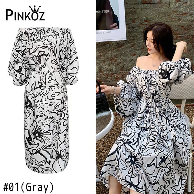 Pinkoz vinatge デザイナー緩いスラッシュネックレースアップミディドレス女性カジュアルストリートファッションゲイ花柄プリントドレス大 ピンク