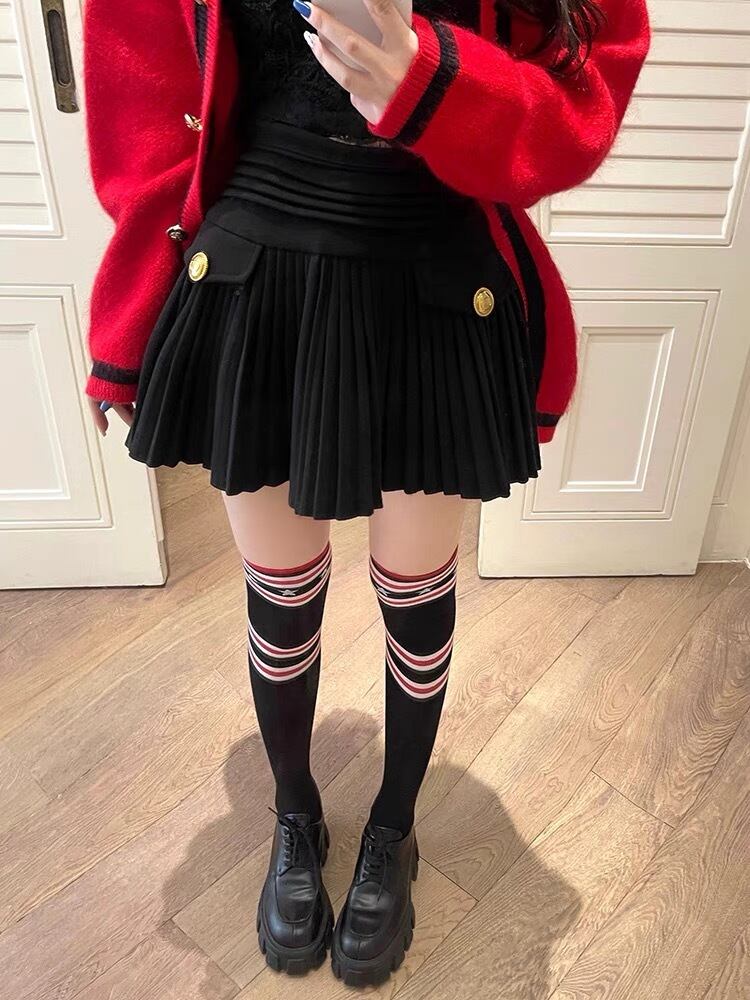 Pinkoz デザイナー女性白ハイウエストプリーツボタンミニスカートパーティーセクシーな A ライン短い甘いスカートハイストリートシックな服 ハイウェスト ショート ピンク ホワイト 大人ガーリー スウィート キュート カジュアル Aライン