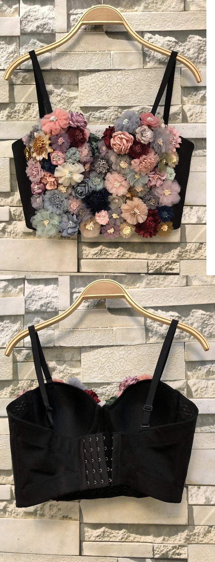 Pinkoz アップリケ花 Corselets 女性の独身ビスチェブラジャークロップドトップウェディング Bralette ベストプラスサイズ ピンク 大きめサイズ 花柄