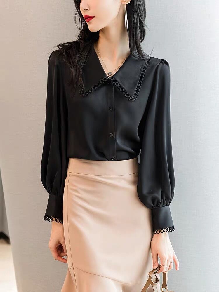Pinkoz デザイナー女性白シャツオフィスレディピーターパン襟フルスリーブシングルブレストカジュアルハイストリートブラウスプラスサイズ ピンク ホワイト 大きめサイズ 会社 学校 通勤や通学にも