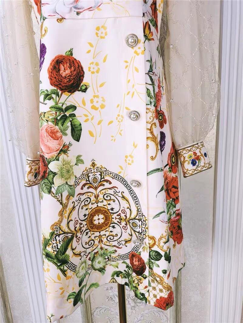 Pinkoz デザイナー スタイリッシュなミディ ドレス女性刺繍ボタン フル スリーブ花柄プリント ピーターパン za ファム ドレス vestidos ピンク フェミニン