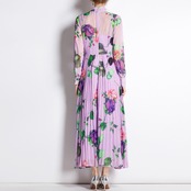 Pinkoz ランウェイ デザイナー ピンク フローラル プリント ボウ カラー プリーツ ミディ ドレス ホリデー シック ローブ デ ムヘール 春 traf リボン スプリング 春物 花柄