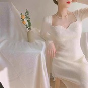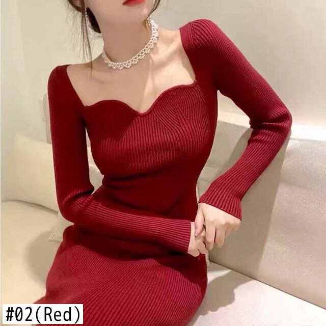 Pinkoz デザイナーハートラブ v ネックフルスリーブニットミディドレスホワイトボディコンぬるぬる春秋のパーティードレス女性レディ ピンク スプリング 春物 オータム 秋物 Vネック
