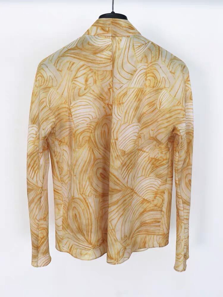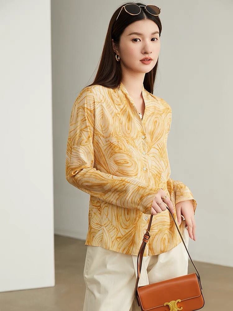 Pinkoz イエロー 花柄 ヴィンテージ エレガント Vネック シフォン y 春 秋 ブラウス ファッション トップス シャツ blusas mujer de moda ピンク スプリング 春物 オータム 秋物 ビンテージ