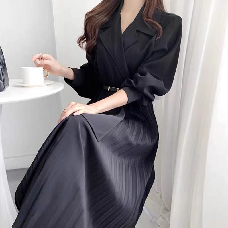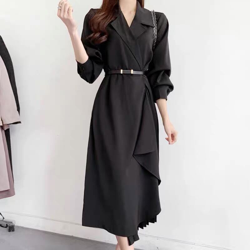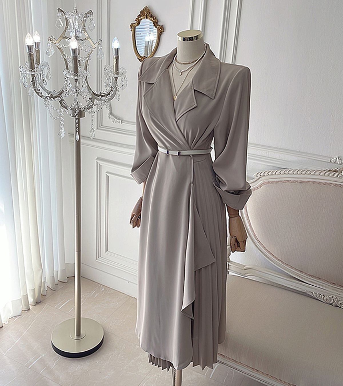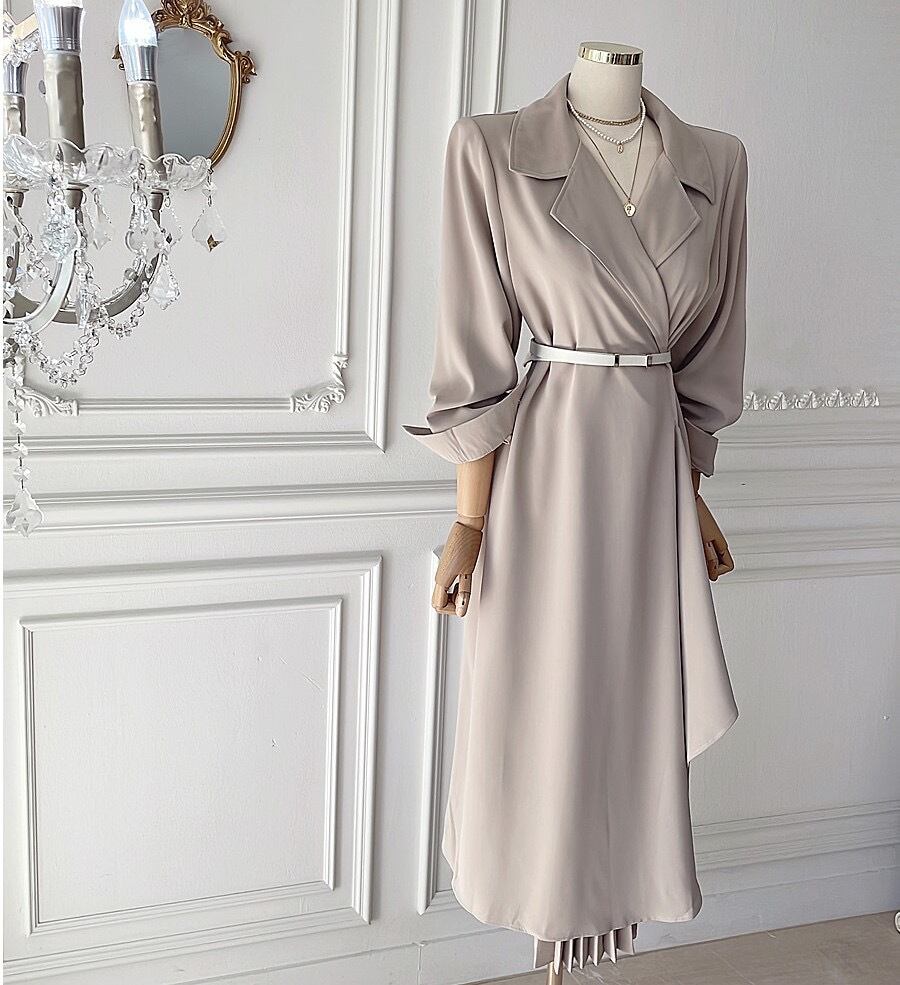 Pinkoz レディース ドレス メンズ ホワイト ターンダウンカラー ルーズ ミディドレス ベルト付き エレガント トレンチ ベージュ ファム OL ロングローブ ベルト付き ピンク ハーネス フェミニン