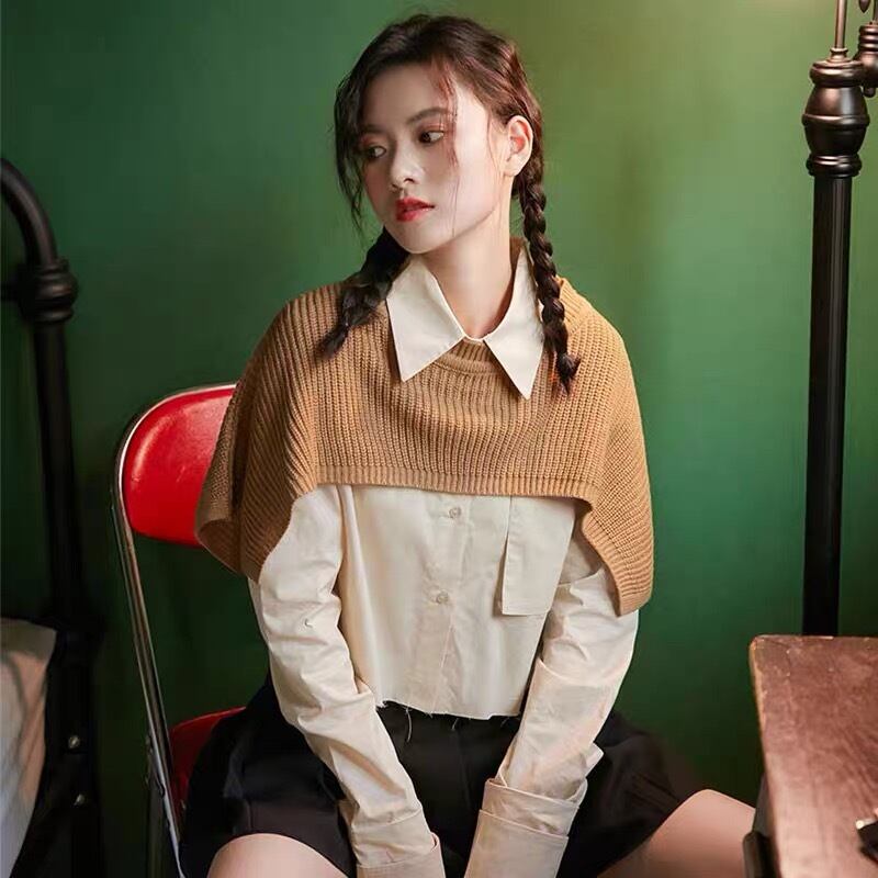 Pinkoz デザイナー スタイリッシュな女性 2 点セット シャツ フルスリーブ カジュアル モリ ベージュ ブラウス ターン ダウン カラー ニット トップス トラフ ピンク