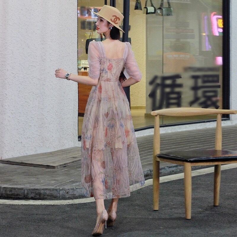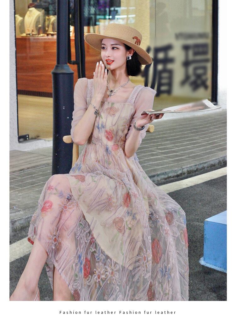 Pinkoz 女性高級刺繍メッシュドレスフェスタロングウェディングパーティーローブレディー Vestidos トラッド ピンク