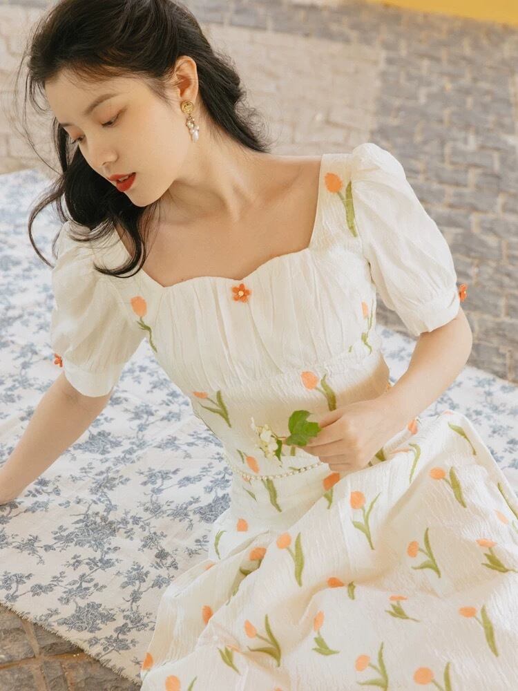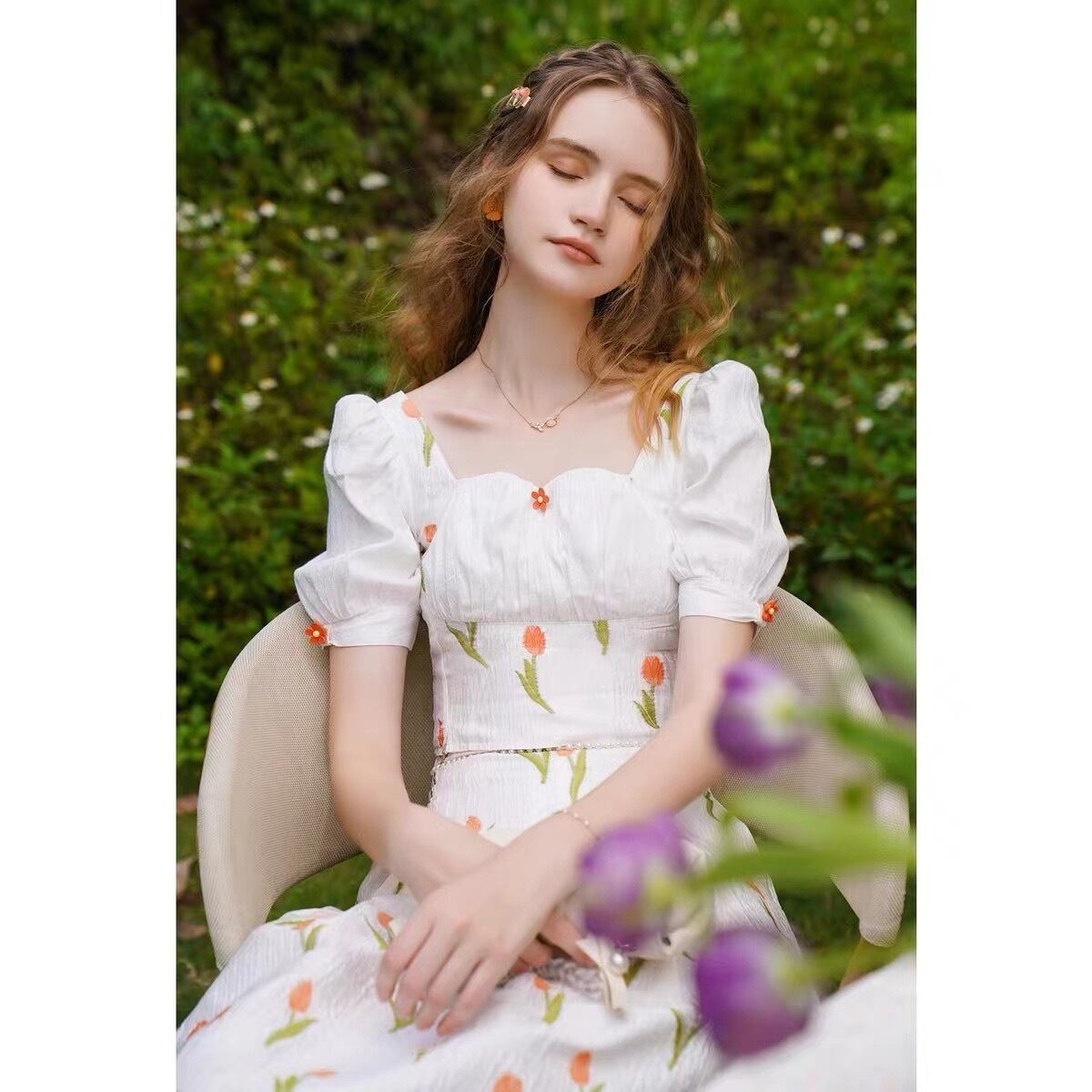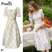 Pinkoz 女性ツーピースセット夏プリントショートトップ + スカート滑走路パーティーホリデーチューリップ花柄シックな衣装 ピンク サマー 夏物