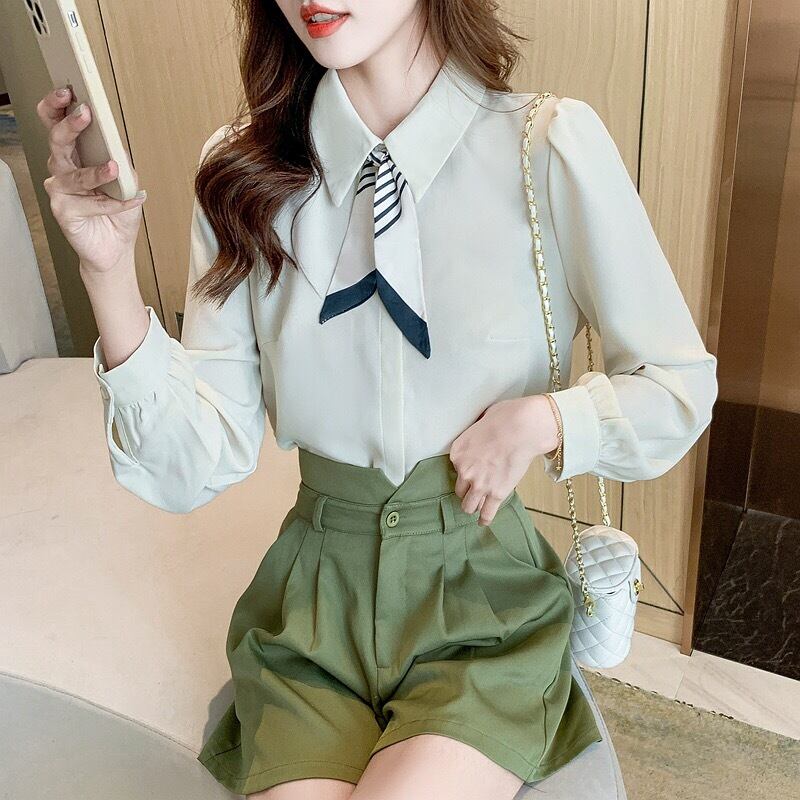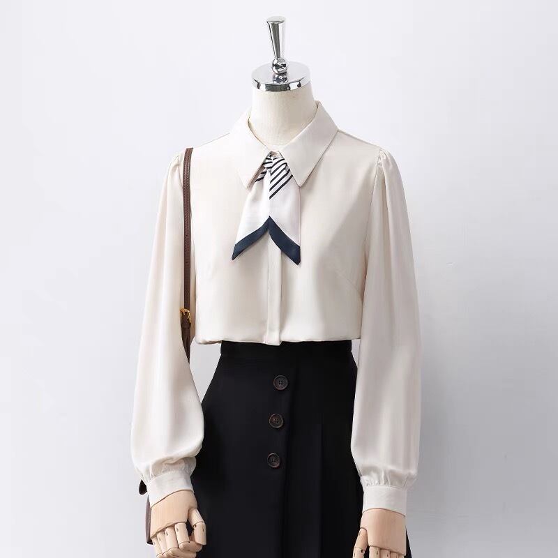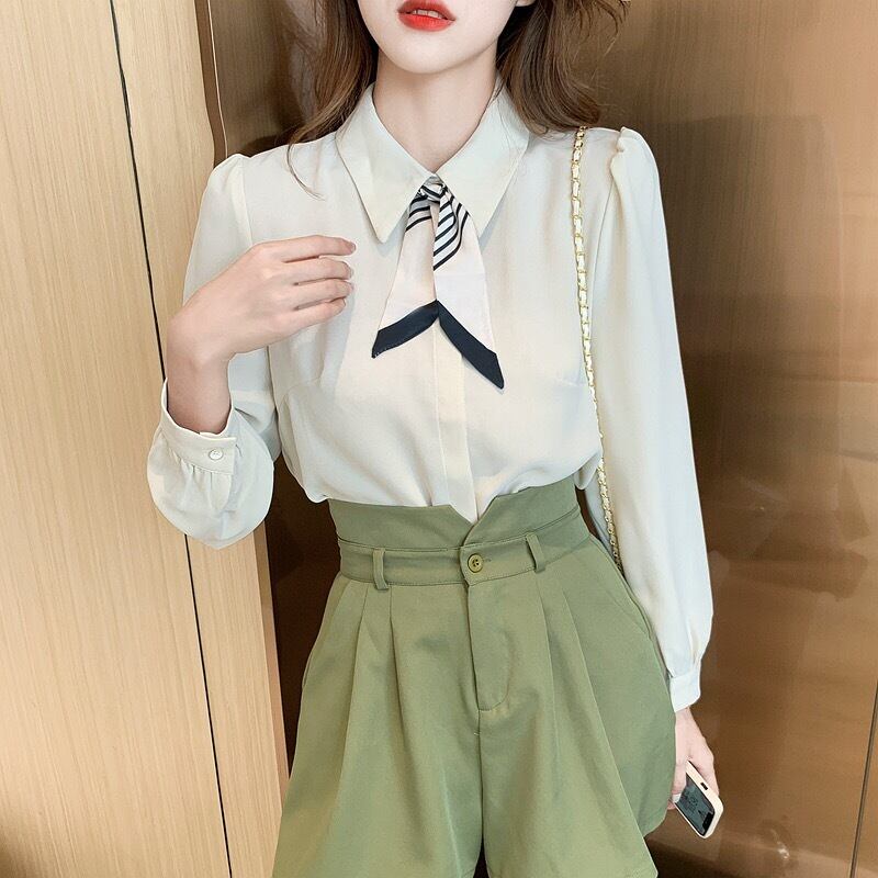 Pinkoz 女性ちょう結び森シフォンプリントトップスシフォン長袖ブラウスワークウェアオフィスシャツ ロング ピンク リボン 会社 学校 通勤や通学にも