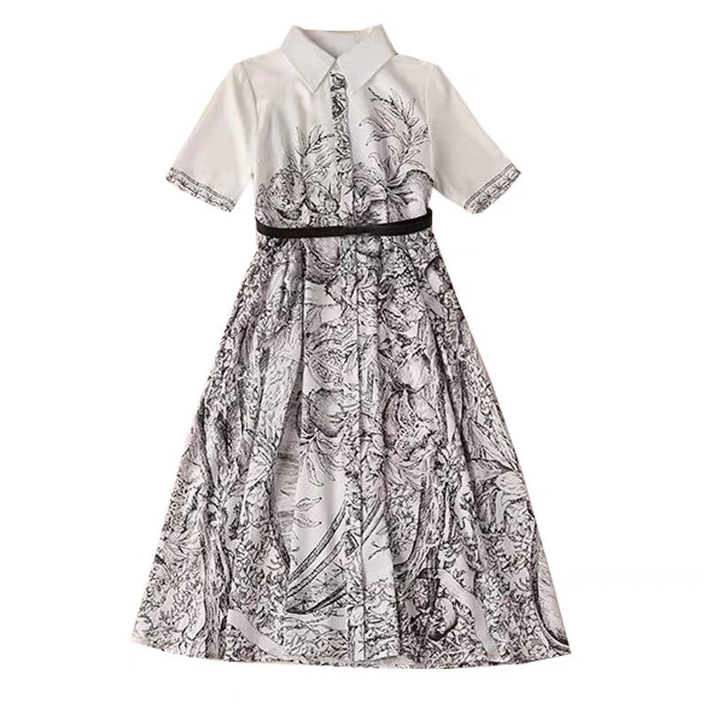 Pinkoz ターンダウンカラー ミディドレス 花柄 ドレス クロス 夏 オフィス lade vestidos With Blet ピンク サマー 夏物 会社 学校 通勤や通学にも