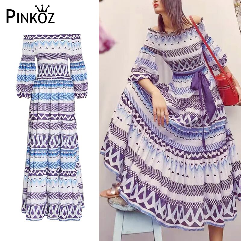 Pinkoz 夏の女性のランウェイ ロング ドレス半袖ストライプ プリント スラッシュ ネック ドレス Vestdios Traf ショート ピンク ハーフスリーブ サマー 夏物