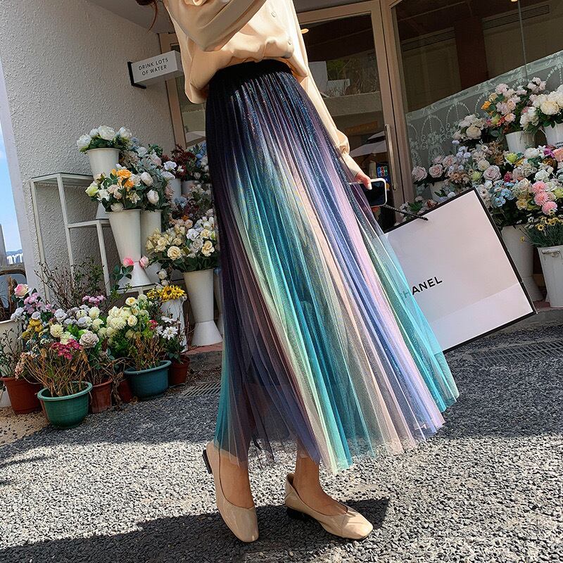 Pinkoz 女性グラデーションエレガントなロングスカートハイウエストプリーツ春秋パーティーの女性の高級スカートカジュアルファッション服 traf ハイウェスト ピンク スプリング 春物 オータム 秋物