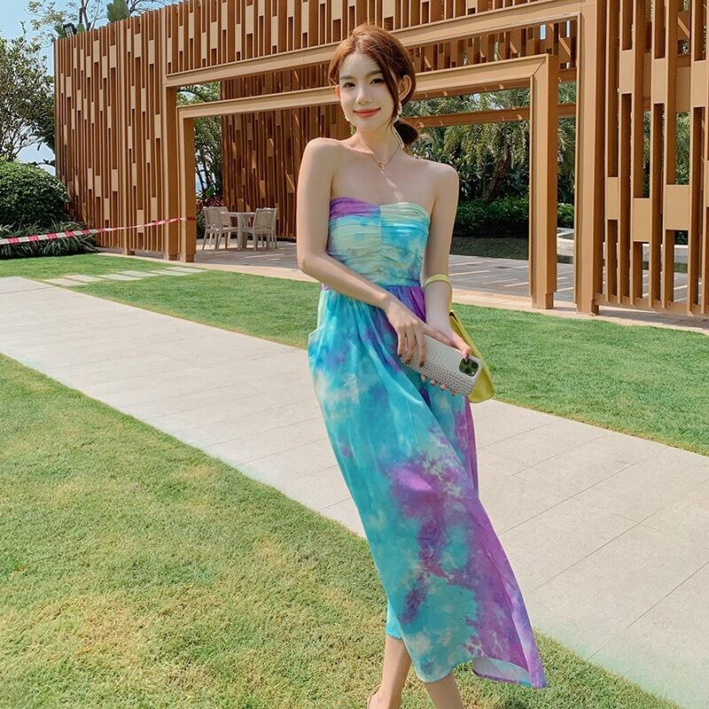 Pinkoz 滑走路デザイナー絵画ストラップレスオフショルダー女性ミディドレス夏休みパーティーローブナイト vestidos ヴィンテージ z ピンク サマー 夏物 ビンテージ
