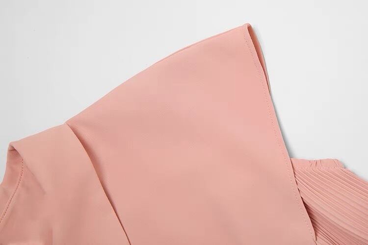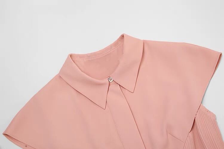 Pinkoz ピンク ミディ ドレス ノースリーブ ターン ダウン襟エレガントなオフィス レディー プリーツ ロング ドレス シックなローブ デ mujer oarty vestidos za 会社 学校 通勤や通学にも