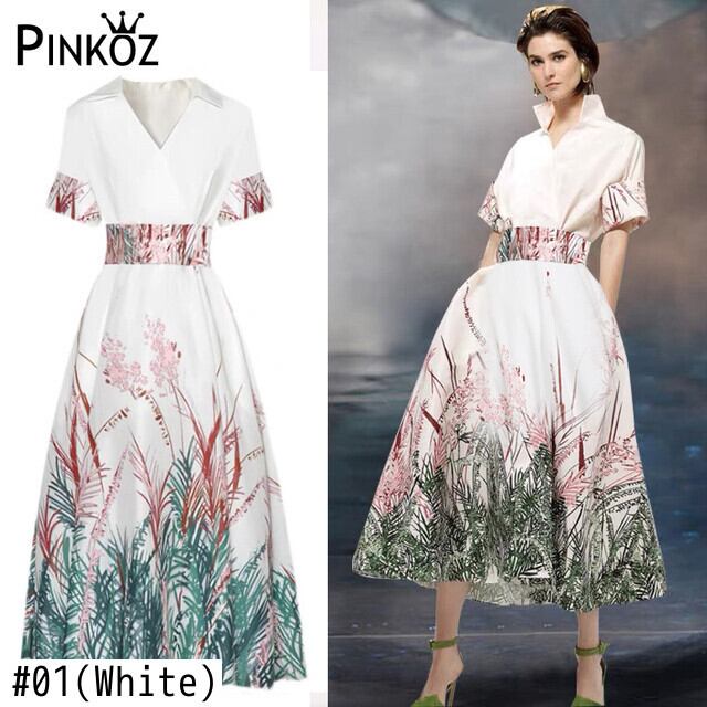 Pinkoz 滑走路デザイナー美的花柄プリントパーティーマキシドレス女性ハイウエスト弓サッシエレガントなイングランドスタイルのローブ traf ピンク リボン ヨーロピアン