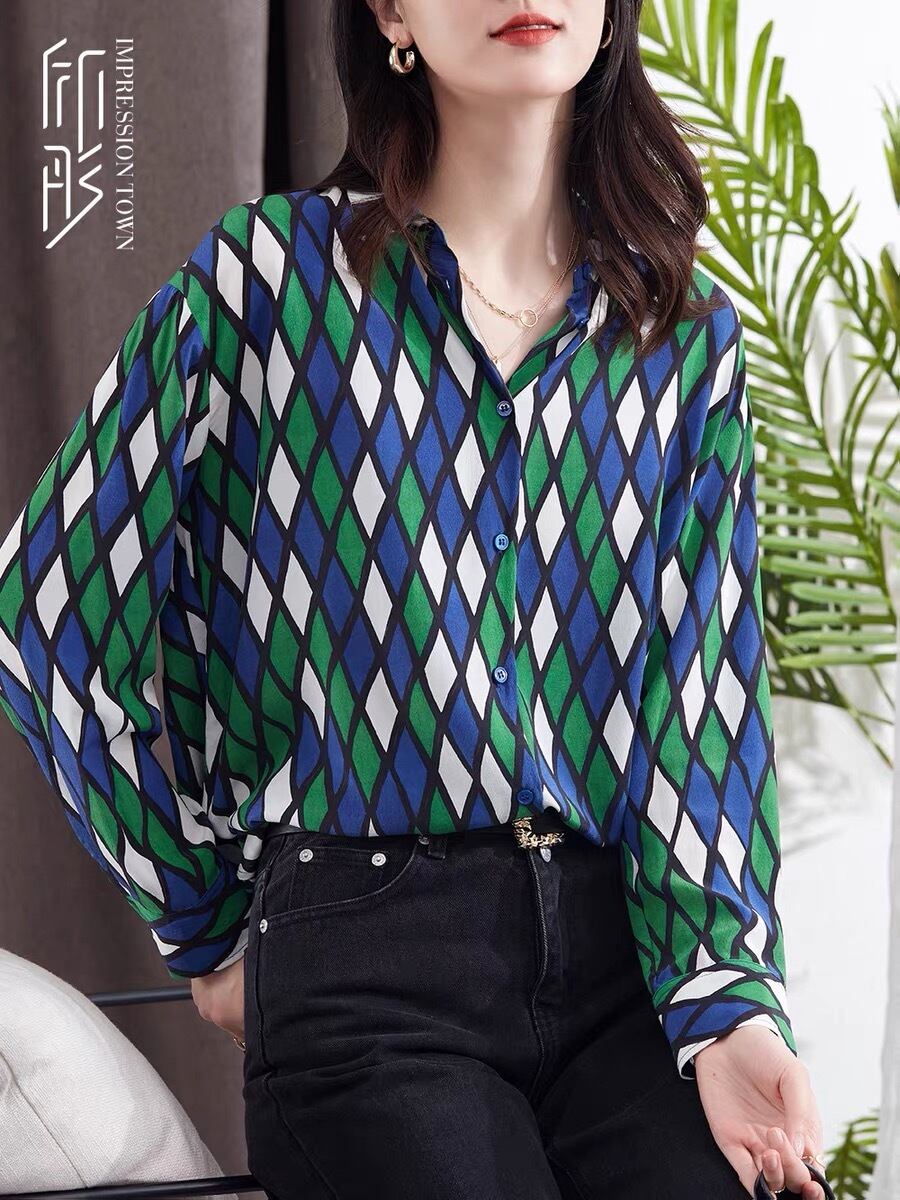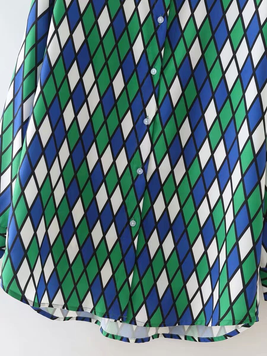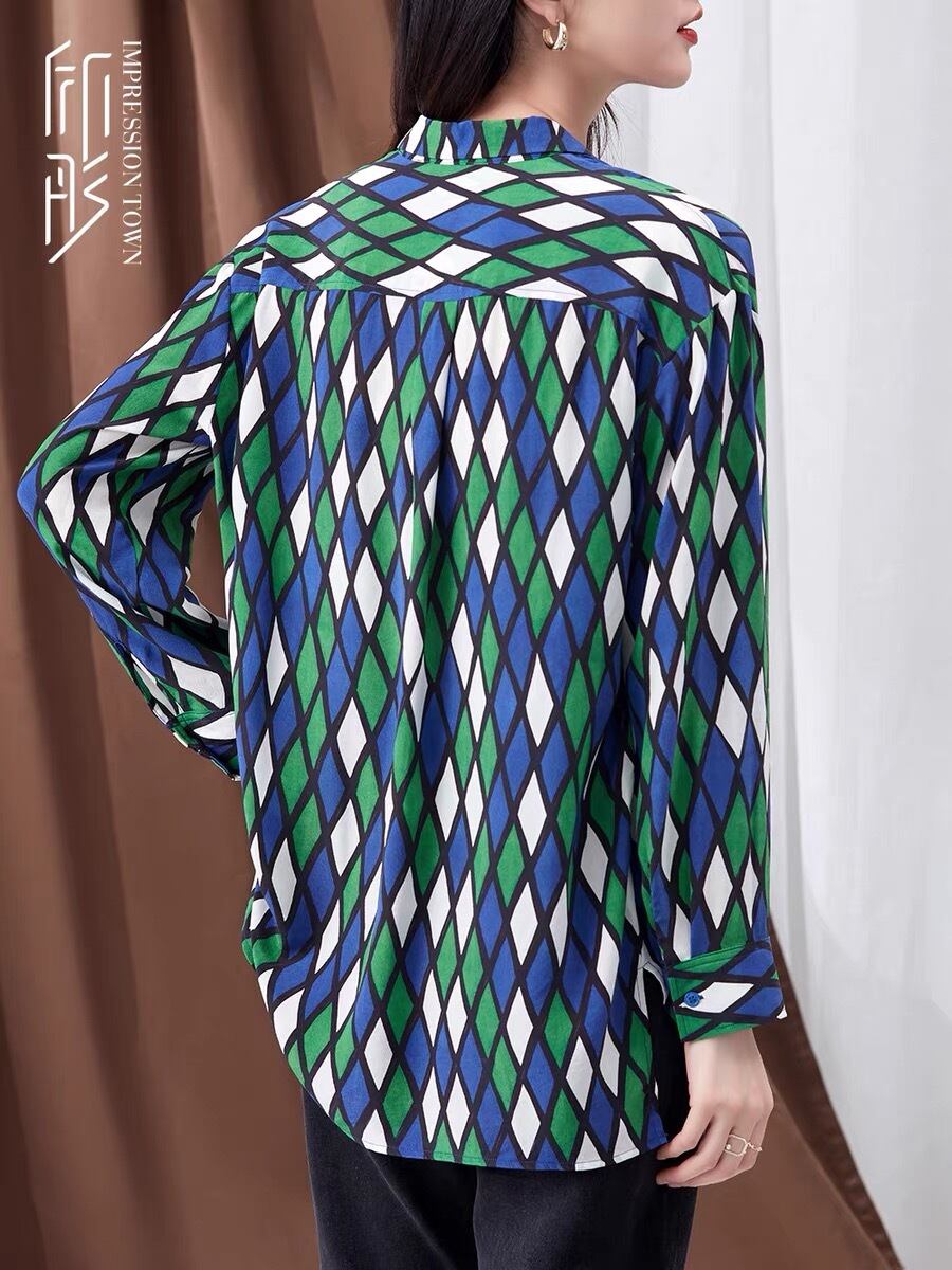 Pinkoz 女性グリーンロングシャツカジュアルヴィンテージデザイナーファッション服ターンダウン襟春秋 blusas mujer デモーダブラウス ピンク スプリング 春物 オータム 秋物 ビンテージ